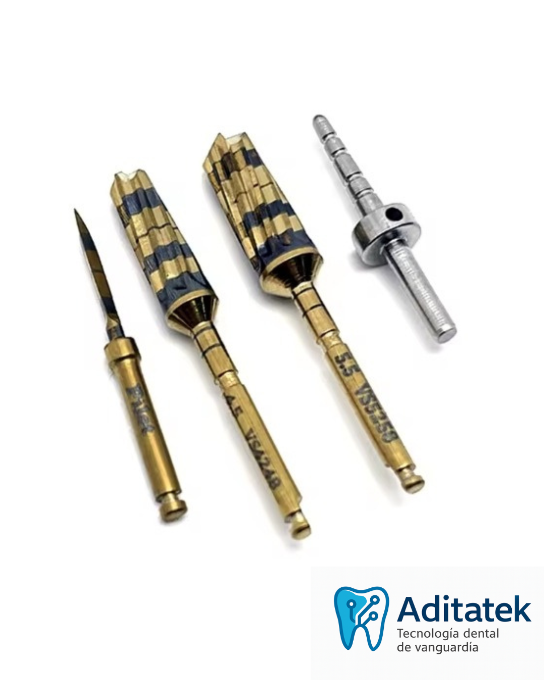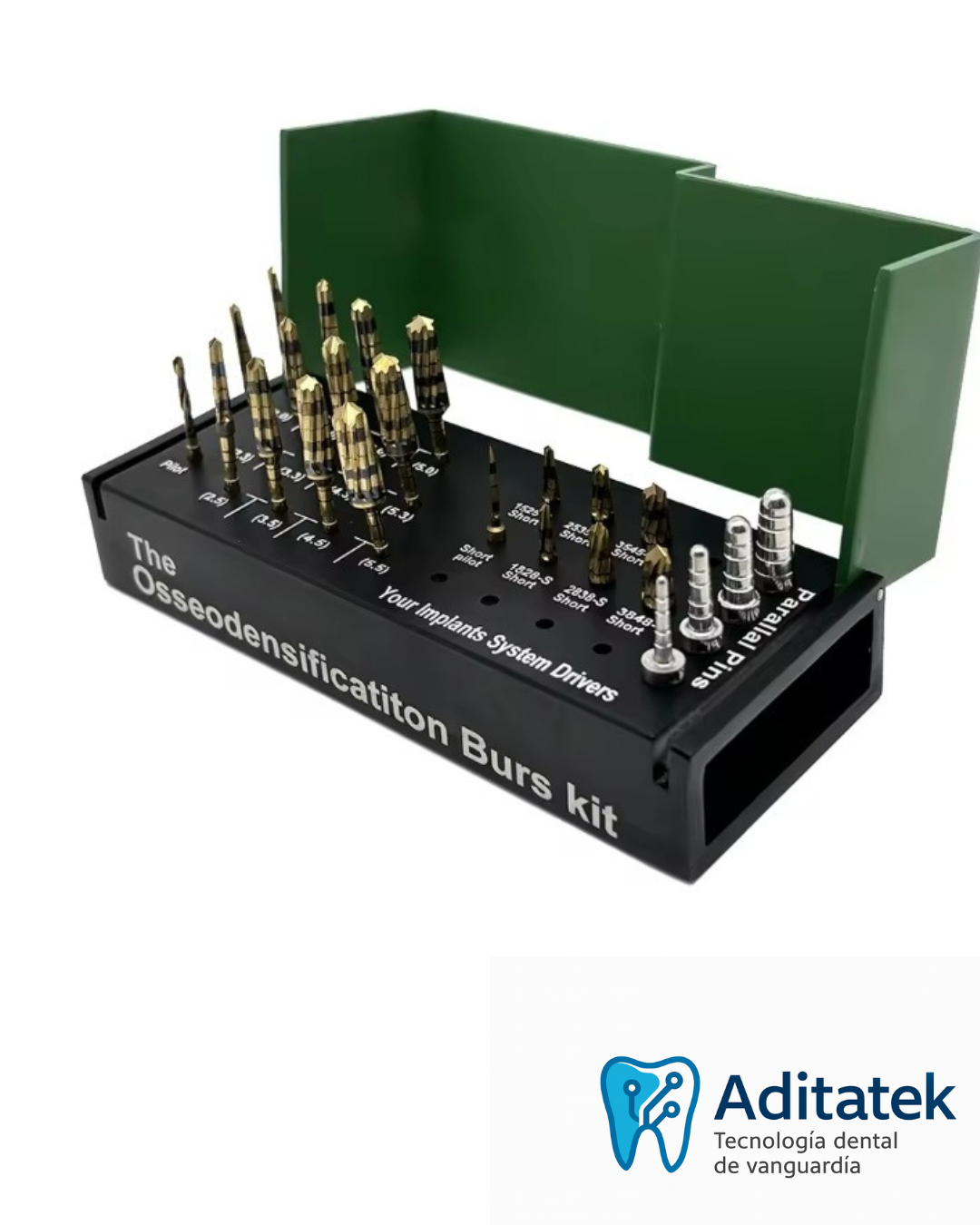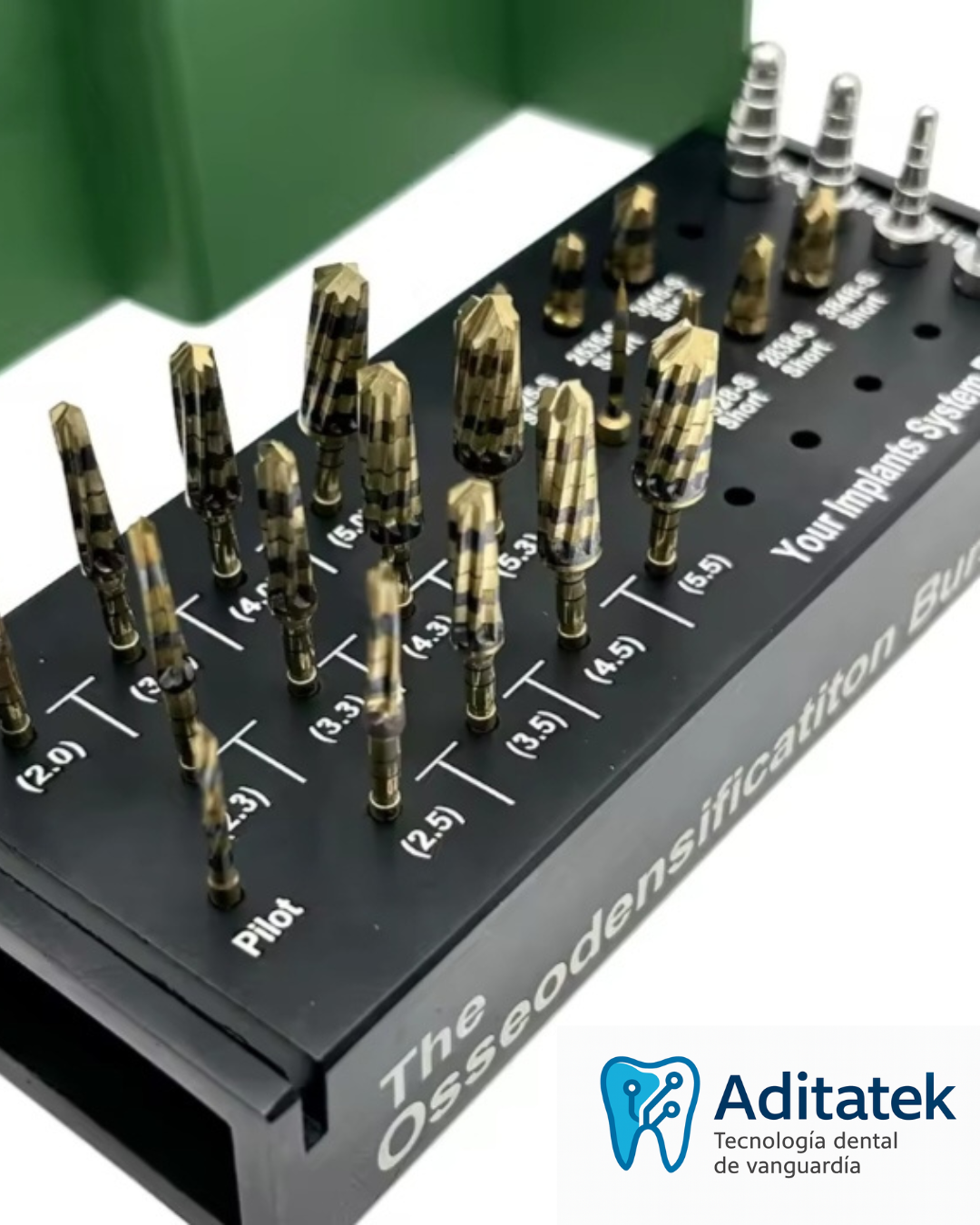 El Kit de Fresas para Osseodensificación de Aditatek está diseñado para maximizar la estabilidad primaria y obtener resultados predecibles en implantología.